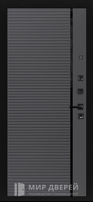 Эта дверь отличается современным дизайном и строгой эстетикой, которая прекрасно подчеркнет интерьер квартиры, офиса или частного дома. Корпус выполнен из профильной трубы 50х25 мм с ребрами жесткости 40х25 мм и стальным листом толщиной 2 мм, что делает конструкцию устойчивой к нагрузкам и надежной в эксплуатации. С обеих сторон поверхность оформлена панелями МДФ ПВХ в темных оттенках серого и черного, создающих стильный и солидный внешний вид. Входная дверь для квартиры №1 гармонично впишется как в классические, так и в современные интерьеры, сочетая визуальную привлекательность с функциональностью. Два контура резинового уплотнителя обеспечивают хорошую изоляцию от шума и запахов, при этом при необходимости конструкция может быть дополнительно оснащена плитой минваты или пенопластом для повышения тепло- и звукоизоляции. Блокираторы усиливают защиту, а универсальность модели позволяет изготавливать изделие в любых размерах и дополнять его различными элементами — от декоративных вставок до установки видеодомофона, что делает дверь не только надежной, но и максимально удобной в эксплуатации.